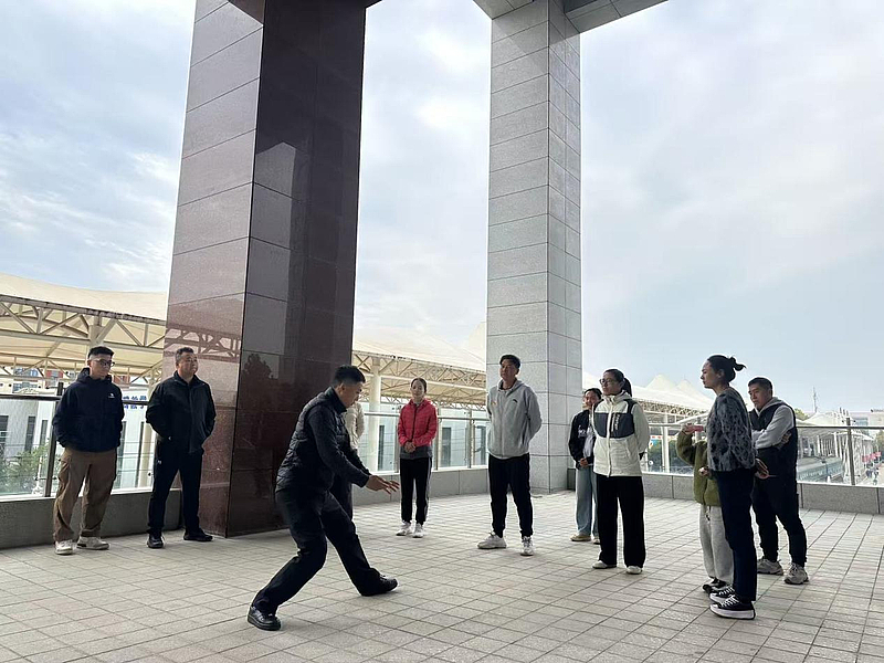 教学方法上,针对该段落动作衔接紧密、重心转换复杂的特点,主讲教师设计了分层教学方案。对于高探马的 “虚步探掌”,采用 “分解练习 + 镜像示范” 法,先让学生单独练习虚步站姿,再结合探掌动作,通过教师正面与侧面的镜像示范,帮助学生纠正身体姿态;针对右蹬脚与转身左蹬脚的重心转换难题,创新运用 “口令引导 + 阻力训练” 法,以 “转 - 提 - 蹬” 的节奏口令配合学生动作,同时让学生借助弹力带进行腿部力量训练,增强蹬脚时的稳定性与爆发力;此外,还引入 “同伴互助纠错” 模式,让学生分组练习,相互观察动作细节,对照技术标准进行互评互改,加深对动作要领的理解。