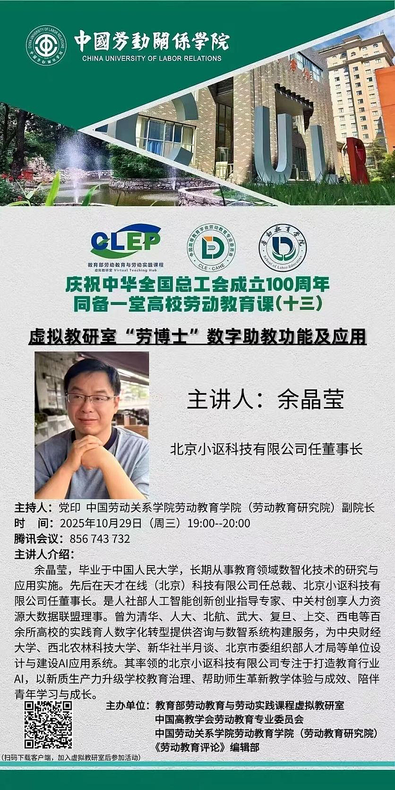 10月29日,我校劳动教育教研室老师们,参加了中国劳动关系学院组织的“同备一堂高校劳动教育课”活动,深刻学习了“虚拟教研室‘劳博士’数字助教功能与应用学习”这堂传经送宝的课程。课程的提问环节,马蜜老师代表教研室提出“劳动教育实践内容如何考核的”的疑问,与线上劳动教育的同行们,做了深入的交流学习。
