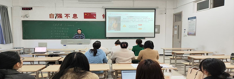2025年11月15日,英语教研室大一组教师在1-103教室开展集体备课活动,本次围绕大学英语四级考试中的听力模块,由高兆君和王娟两位老师主讲。