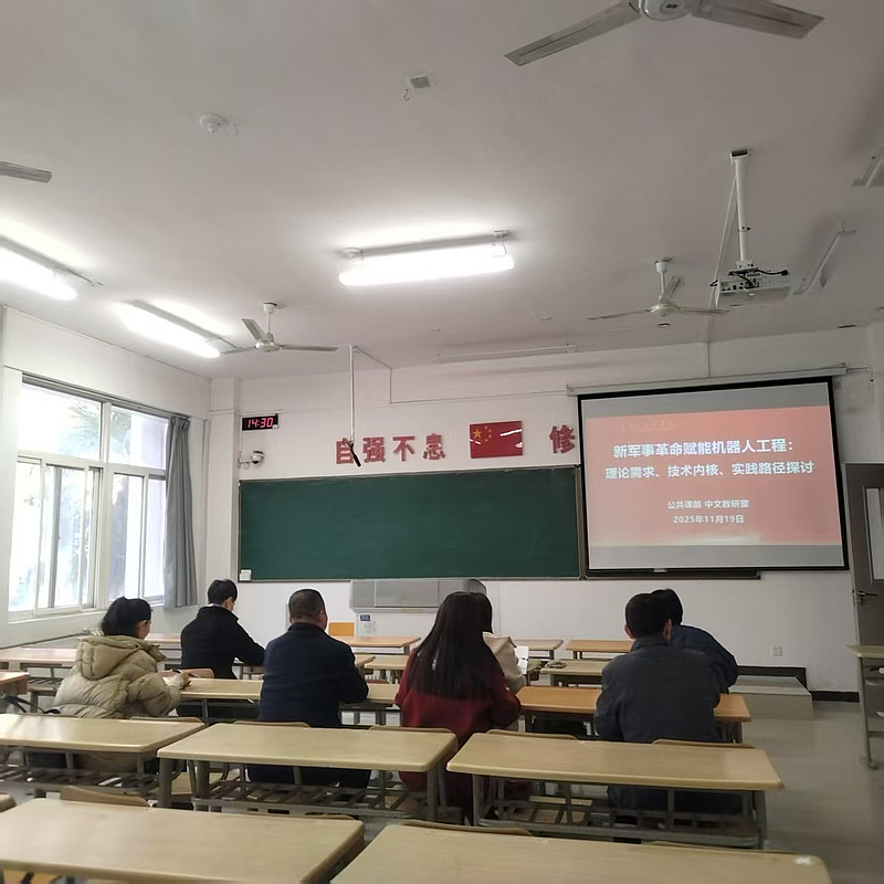11月19日下午,中文教研室在教学楼1-105教室开展新军事革命赋能机器人工程:理论需求、技术内核、实践路径探讨专题会议。
