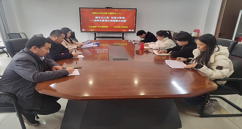 12月3日,中文教研室于X-516召开“课程与专业支撑”专题研讨会,聚焦“融专业之思,拓育才新境——深耕军事理论课程融合创新”进行深入研讨,教研室主任黄英主持会议,教研室全体教师参会。