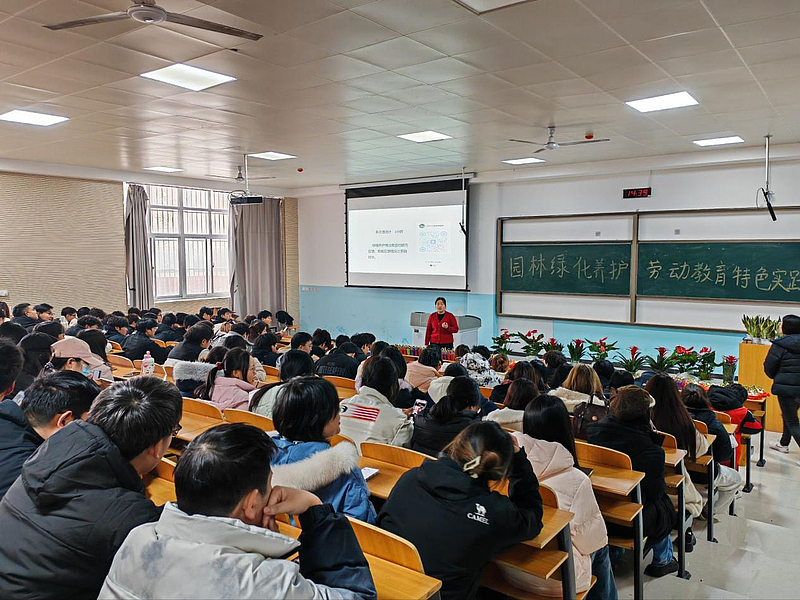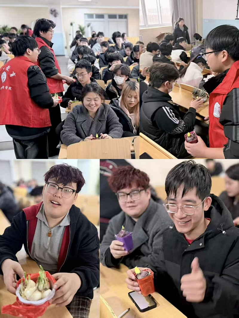 课程由劳动教研室任梦阳老师主讲,12月10日在我校8-101教室,来自全校300多名学生参与。教师从植物分类学基础知识讲起,引导学生建立系统认知,详细讲解校园里常见植物的识别特征,使学生能够了解身边的花草欣赏时间、地点,让学生更热爱校园生活。接着,课程传授植物养护的实操知识与技能,包括光照、水肥管理、常见病虫害防治等。最后,劳动教育教研室老师们给每位上课的学生发放当季的花卉,如风信子、水仙花等,鼓励大家在宿舍、办公室等养护花卉,创造冬日里的绿意。整套课程体系由理论到实践,层层递进。