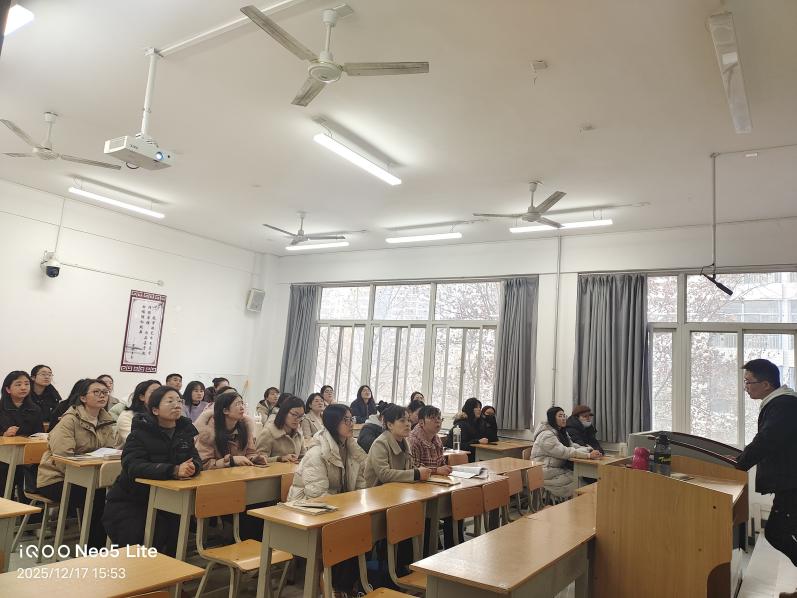 为探索教育创新路径,推动智慧课堂建设,12月17日,英语教研室开展主题教研活动,聚焦人工智能在英语教学中的辅助作用。活动由教研室主任寇向英老师主持,贾智勇老师担任主讲。